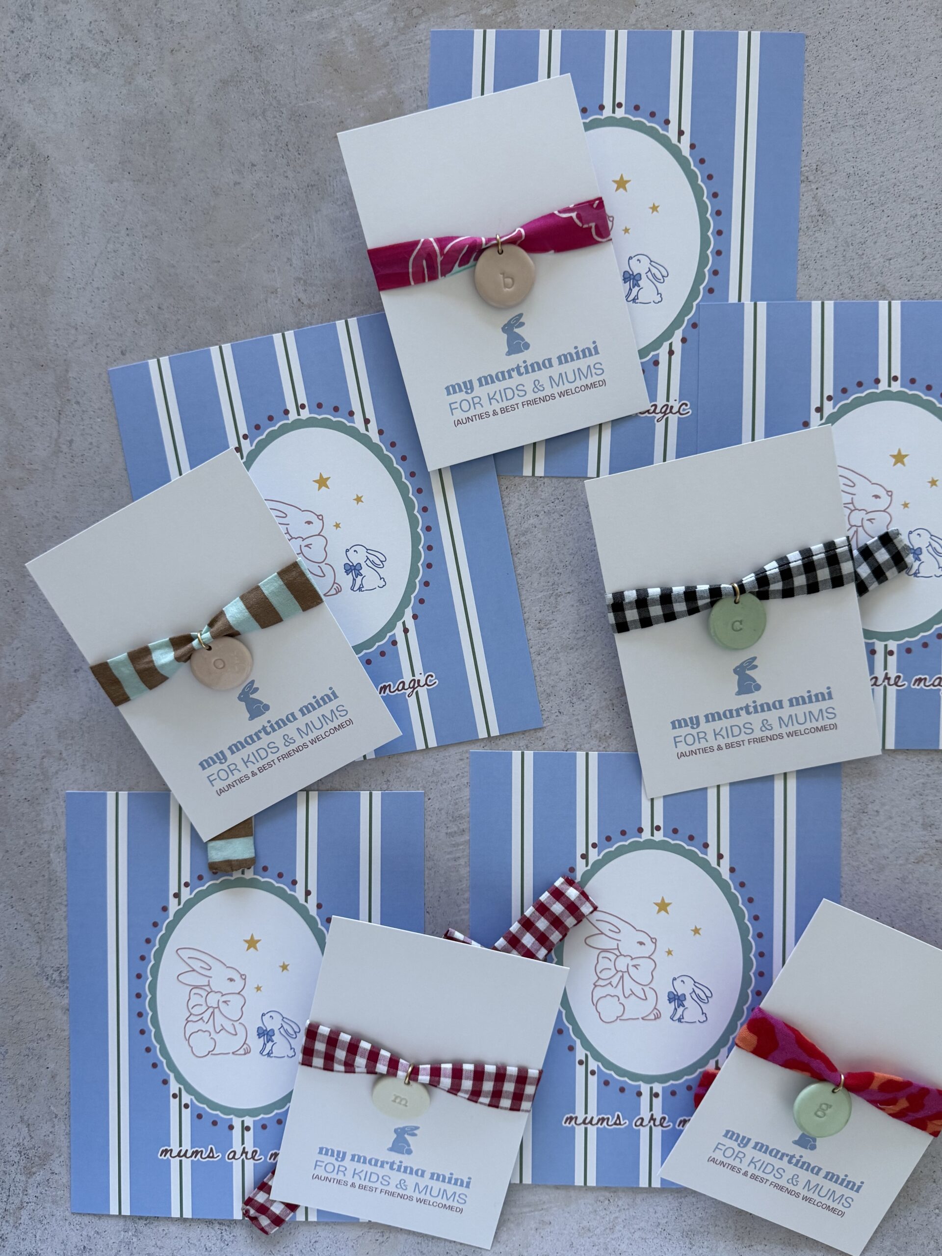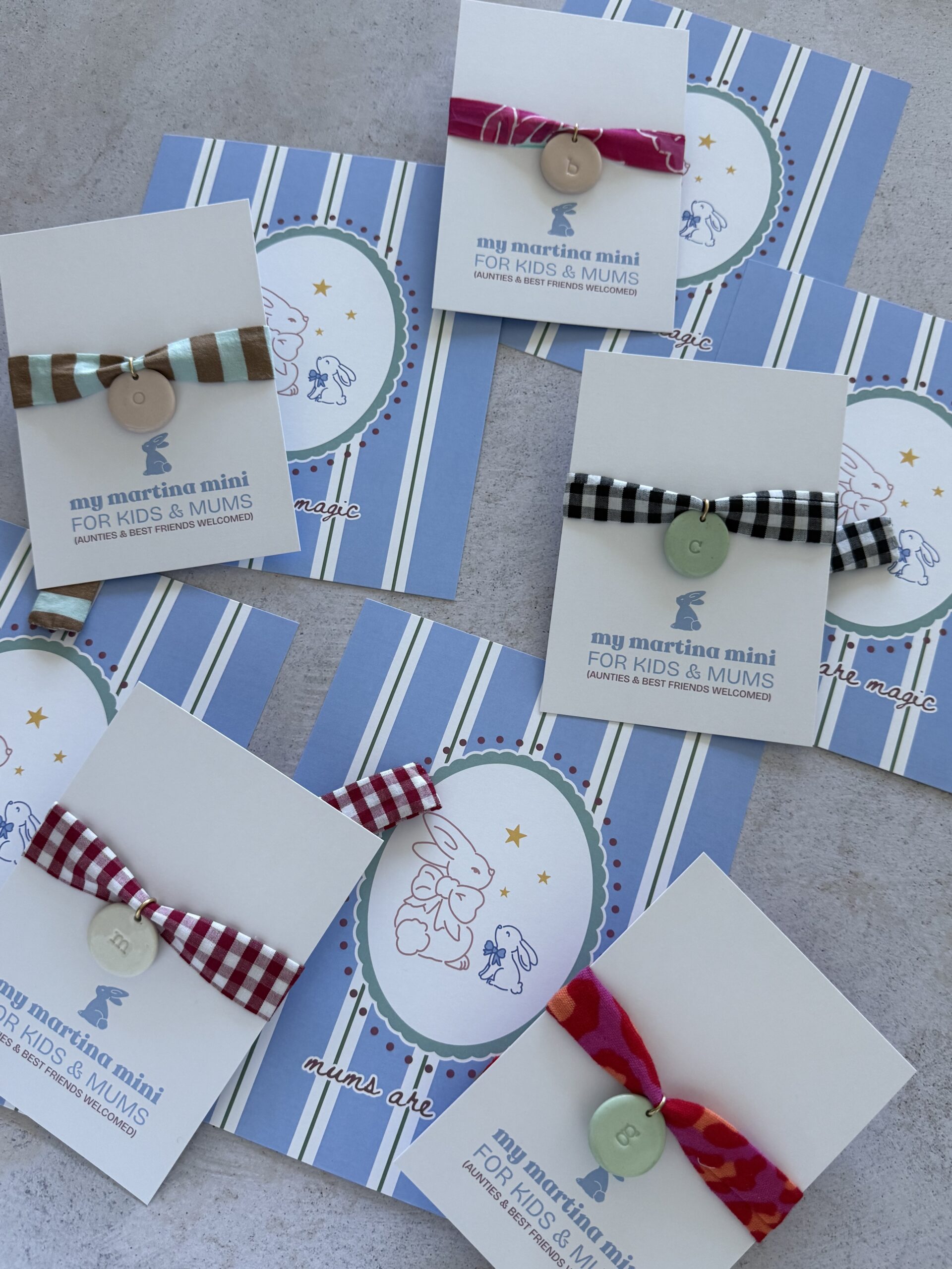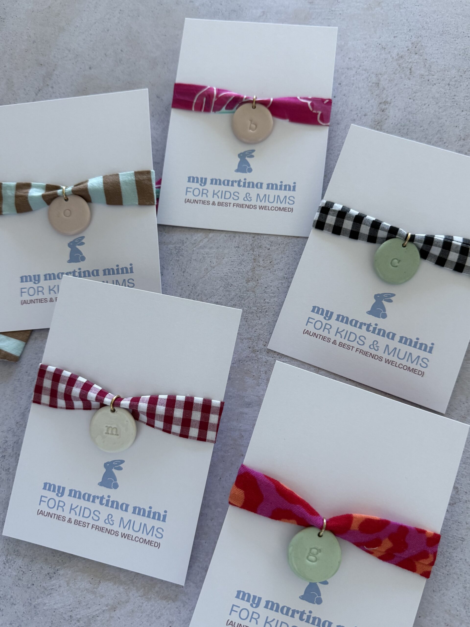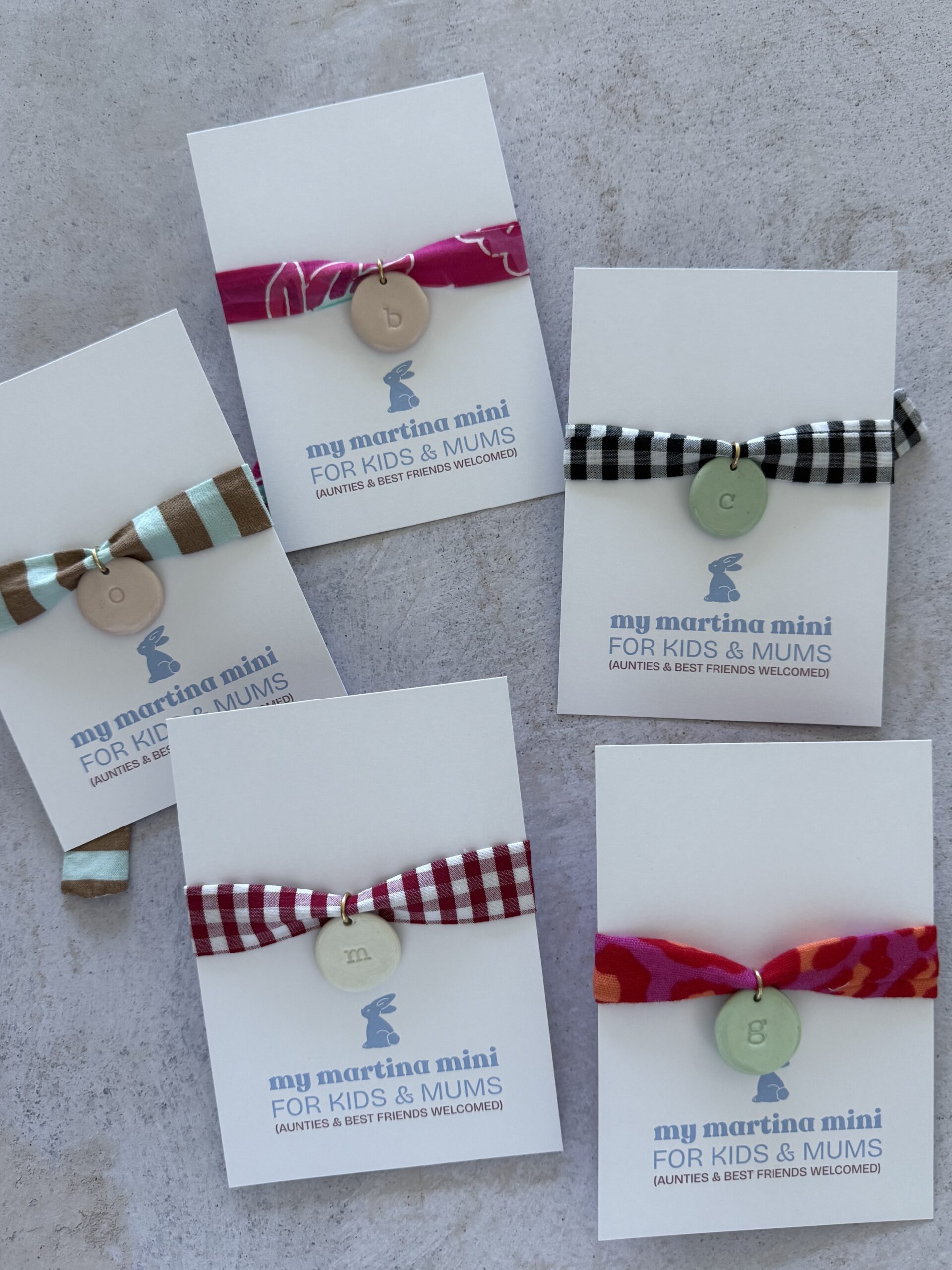 Cinco colores de cintas (largo aproximado entre 68cm y 72cm) que van con su medalla elaborada a mano en porcelana y barnizada después en blanco, rosa empolvado o verde mint.